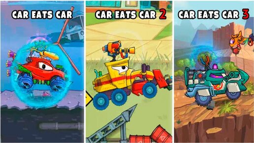 Сравнение Уровней Car Eats Car 1 2 3 - прохождение локаций во всех частях игры машина ест машину