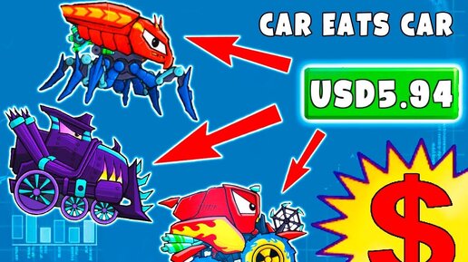 Все Платные Хищные Тачки Машина Ест Машину 1 2 3 4! Гонки Машинок Car Eats Car которые надо покупать