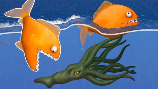 Tasty Blue и Зеленый Кальмар Мультяшная игра про Приключения маленькой Голодной Рыбы