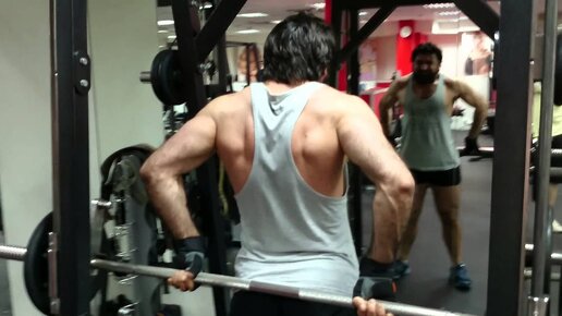 Упражнение для дельт : тяга в Машине Смита за спиной