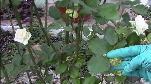 РОЗЫ. ЧЁРНАЯ ПЯТНИСТОСТЬ ПОСЛЕ ДОЖДЯ ВЕРНУЛАСЬ. ИСПОЛЬЗУЮ СМЕСЬ ПРЕПАРАТОВ.