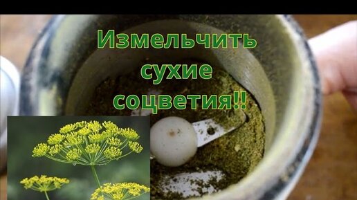 Укроп, соцветия, совет. Измельчаем зацветшие сухие соцветия укропа.