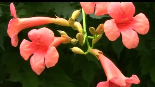 Вьющиеся растения, кампсис в цвету . Campsis