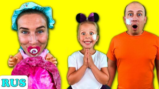 Маша и папа нашли куклу в капусте