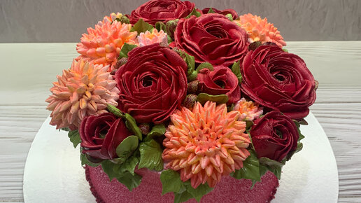 Украшаю ТОРТ цветами. Эффект ВЕЛЮРА из крема.
