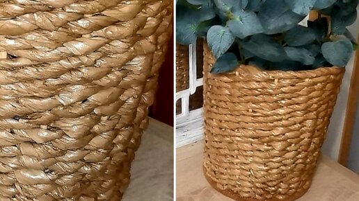 Плетеное кашпо за 120р. Фикс прайс переделка.