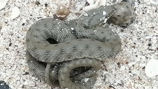 Змея на пляже. Поймали змею. Это уж или гадюка?