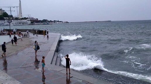 Внушительные волны на набережной. Севастополь 07.08.2021