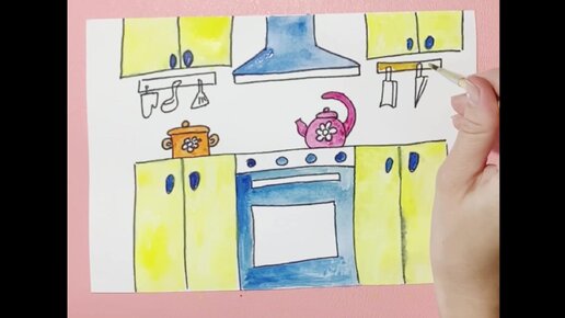 Рисуем домашнюю кухню разукрашиваем гуашью