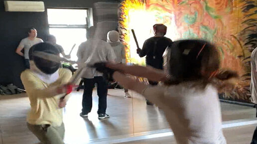 Урок фехтования катаной. Кендзюцу. Спарринг на длинных мечах в тренировочном зале