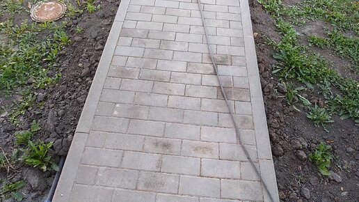 Часть брусчатки мокнет, а часть остается сухой после дождя