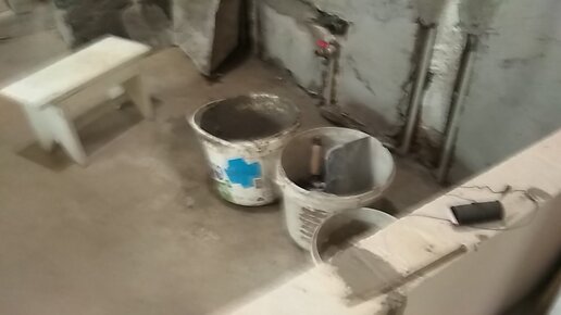 Выложили первый ряд перегородки. Еще показываю, как раньше строили "на века"