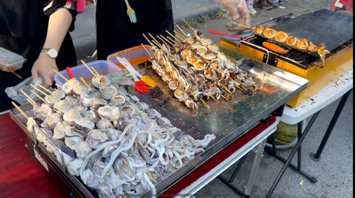 Приготовление кальмаров на шпажках! Макасар! Индонезия!