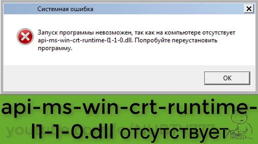 Ошибка api-ms-win-crt-runtime-l1-1-0.dll - Как исправить? Ошибка Виндовс при запуске программы