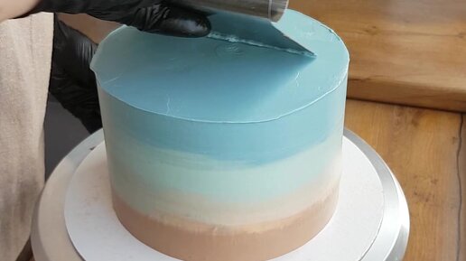 Жена украшает торт кремовыми цветами - родственникам на бирюзовую свадьбу