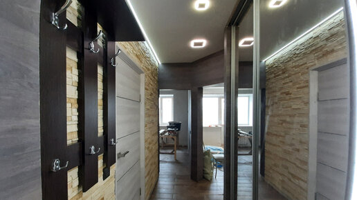Установка дверей шкафа-купе, облицовка искусственным камнем. Прихожая ч.4
