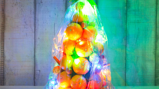 Новогодняя ёлочка из мандаринов с гирляндой!