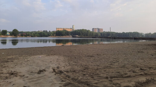 Река Бия и ее берега у понтонного моста, утро