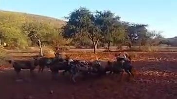 Маленький кабанчик нарвался на стаю гиеновидных собак.