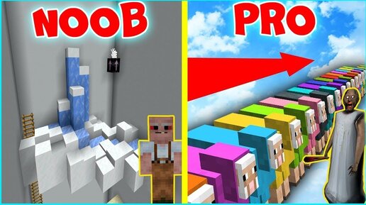 БАБКА ГРЕННИ И GRANDPA ПОСТРОИЛИ ПАРКУР НУБА И ПРО В МАЙНКРАФТ НУБИК В MINECRAFT GRANNY