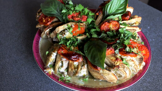 Фаршированные баклажаны в виде веера. Вкусно, красиво и полезно