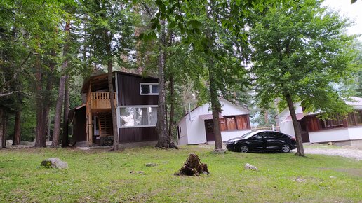Сняли в Архызе домик за 5000 рублей сутки на базе в лесу. Показываю и рассказываю.