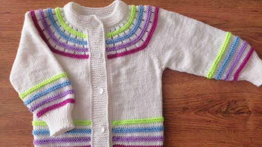 Как я вяжу детскую кофту с круглой кокеткой (полная версия). Вязание детям спицами .