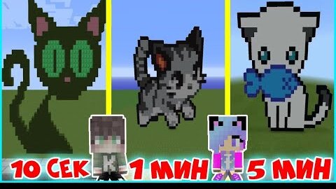 ДЕВУШКА НУБ И ПРО ПОСТРОИЛИ КОШКУ ЗА 5 МИНУТ 1 МИНУТУ И 10 СЕКУНД В МАЙНКРАФТ БИТВА ПОСТРОЕК