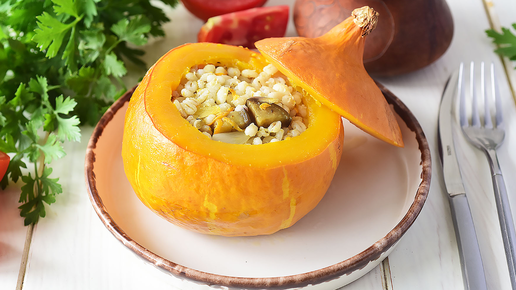 🍲 Готовлю фаршированные тыквы с перловкой и баклажанами без мяса в духовке