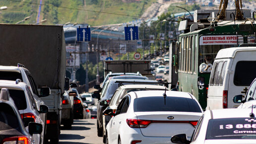 Река автомобилей – поток машин по магистралям и мостам Новосибирска – на их движение можно смотреть бесконечно