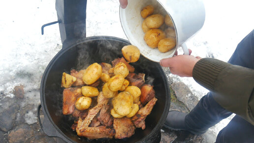 УТКА ПО-ДЕРЕВЕНСКИ В КАЗАНЕ НА КОСТРЕ