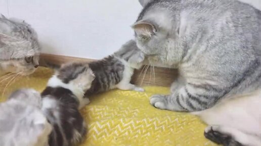 Заботливый кот целует кошку и своих деток котят настоящий мужчина