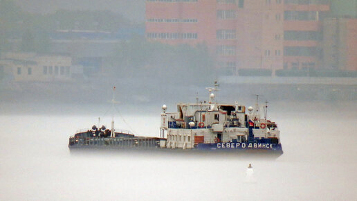 Сухогруз "Северодвинск" идет в тумане. Слушаем ламповый рокот дизеля!
