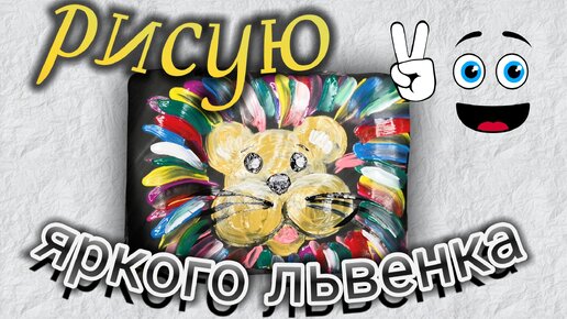 яркий львенок на черном фоне. рисуем гуашью