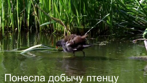 Курочки болотные кормят птенцов
