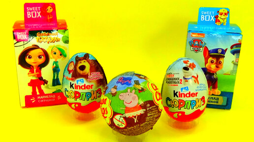 Киндер сюрпризы и Свит бокс с игрушками из популярных мультфильмов