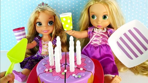 Куклы Пупсики День Рождение Двойняшек Рапунцель Кушают Торт Открывают Подарки Игрушки