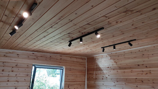 Интерьер нашей бани, преобразился, после монтажа черных светильников и розеток