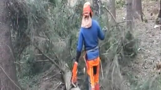 Парнишка-лесоруб решил показать, что и маленькой бензопилой можно навалить много дров