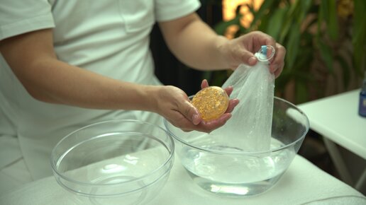 Взбивание мыла с частицами сусального золота Plathlone Gold