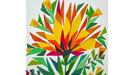 Цветок из треугольников - рисунок гуашью.