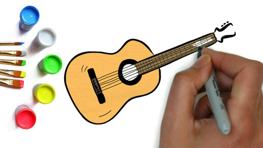 Как нарисовать музыкальный инструмент гитару, лёгкие рисунки и милые раскраски для детей и малышей
