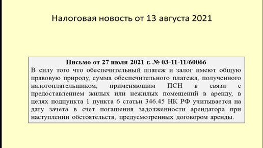Учет обеспечительного платежа при применении патента