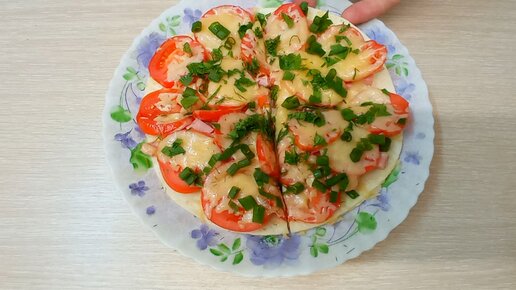 Беру лаваш и готовлю по-быстрому пиццу на сковороде, пока дети умываются