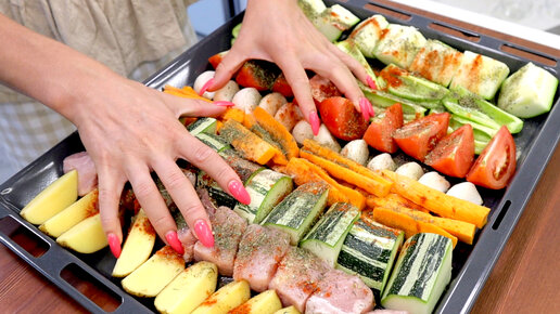 Овощи гриль в духовке с мясом и картошкой, Вкусный рецепт овощей с мясом в духовке