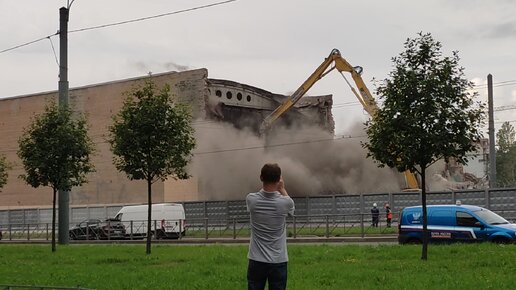 Кран роняет крышу цеха у самой дороги. Завод Светлана скоро станет новым ЖК