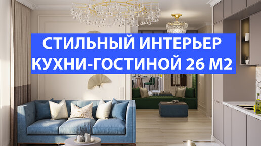 Стильный интерьер кухни-гостиной 26м2.