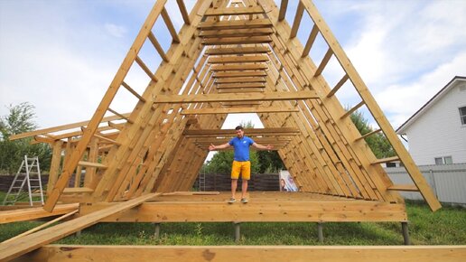 Дом-баня 7,5 х 9 м по технологии A-FRAME. Быстрее и проще, чем обычный каркасник!