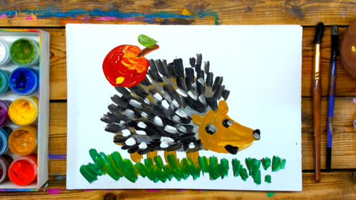 Как нарисовать Ежика поэтапно - урок рисования гуашь