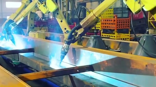 Четыре робота трудятся над одной рамой.